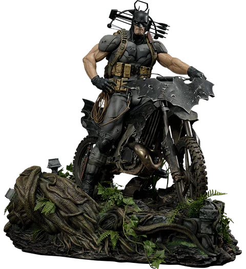 This Ultimate Museum Masterline Batman Zero Year statue shows him riding on his bike and comes with an extra interchangeable right-arm holding the Crossbow.