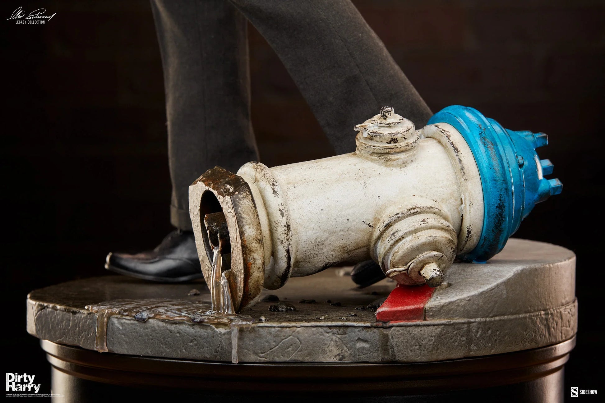 Inspired by the eponymous role in the 1971 action-thriller Dirty Harry, the Harry Callahan Premium Format Figure measures 23” tall on a 10” diameter black circular base with a gold-etched recreation of Clint Eastwood’s signature as an official seal of approval. The statue evokes all the intensity and intrigue of the neo-noir film as SFPD Inspector Harry Callahan walks across a street scene that features water spilling from a broken fire hydrant. He has his signature .44 Magnum firearm in hand and a steely, determined gaze carefully sculpted onto his portrait.