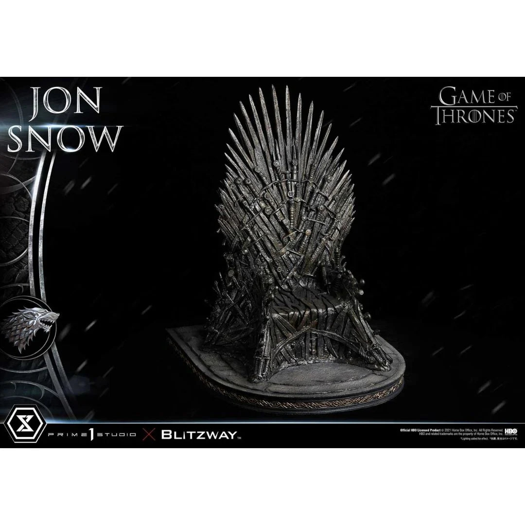 He’s known by many names: The Bastard of Winterfell, Lord Snow, The White Wolf...Aegon Targaryen. But Lord Crow worked his way into our hearts and minds as Jon Snow, bastard son of Eddard Stark, King in the North. And finally, Prime 1 Studio, in collaboration with Blitzway, brings him to you in all his brooding moodiness. Although seated at 24 inches tall, this Game of Thrones masterpiece demands to be displayed in a central place of honor. In this statue, the Warden of the North sits uneasily on the Iron Throne, resting his grip on his mythical sword of Valyrian steel, Longclaw: Lord Commander Jeor Mormont’s present to Jon for saving his life.