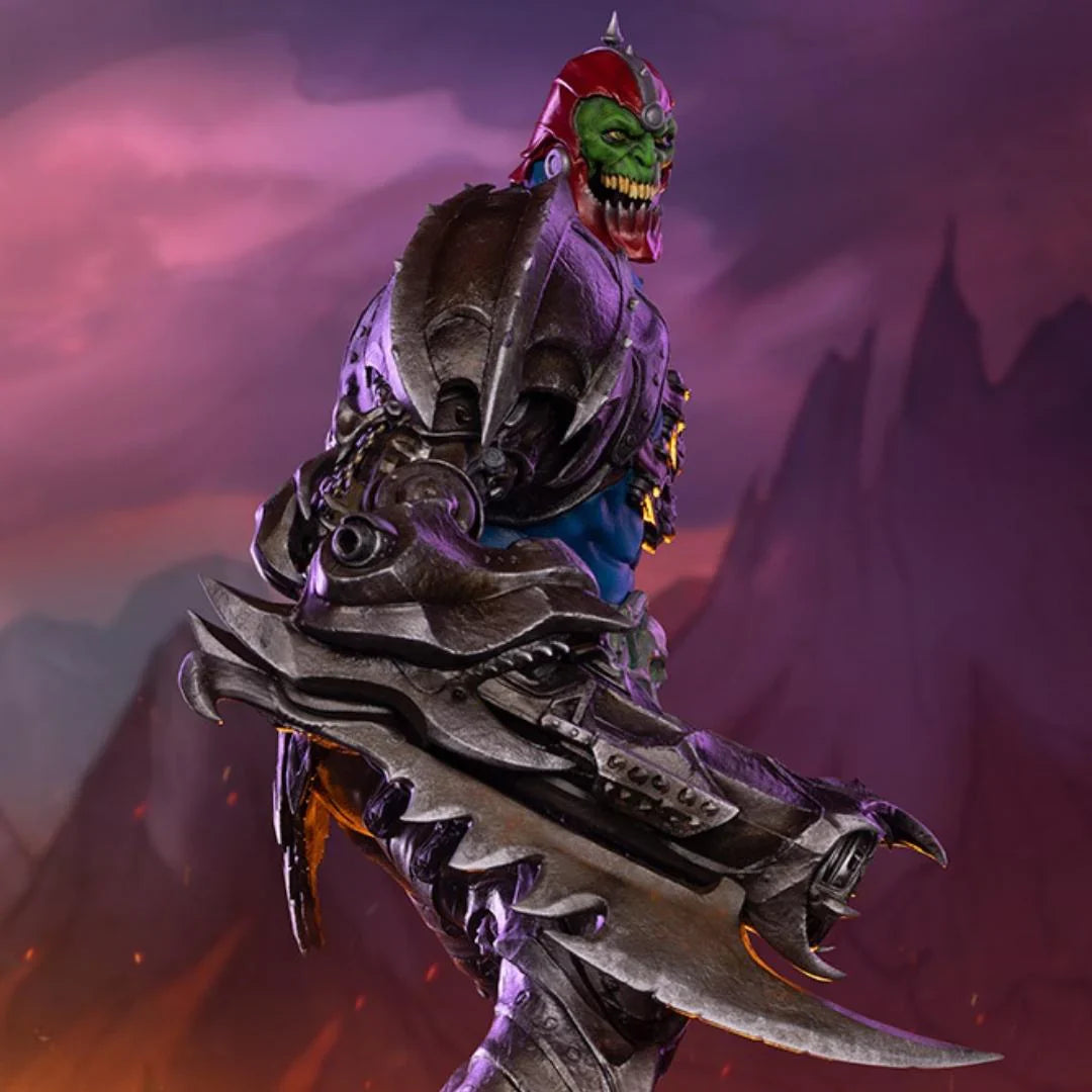 The polyresin Trap Jaw Maquette is covered head to toe in deadly detail, proving why they call him the Wizard of Weapons. His costume includes his signature maroon helmet with an indestructible crushing jaw, meticulously constructed mechanical armor with spikes and claws, a multipurpose robotic arm, and a belt of power tools. Rust and patina paint effects create the look of a weathered warrior who has survived — and emerged victorious from — countless battles.